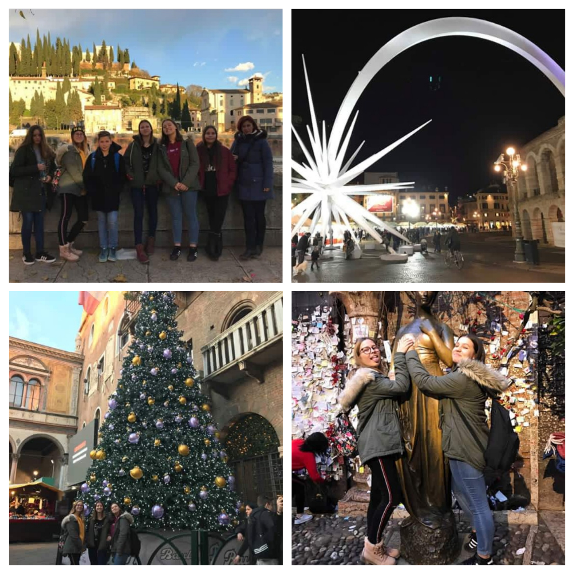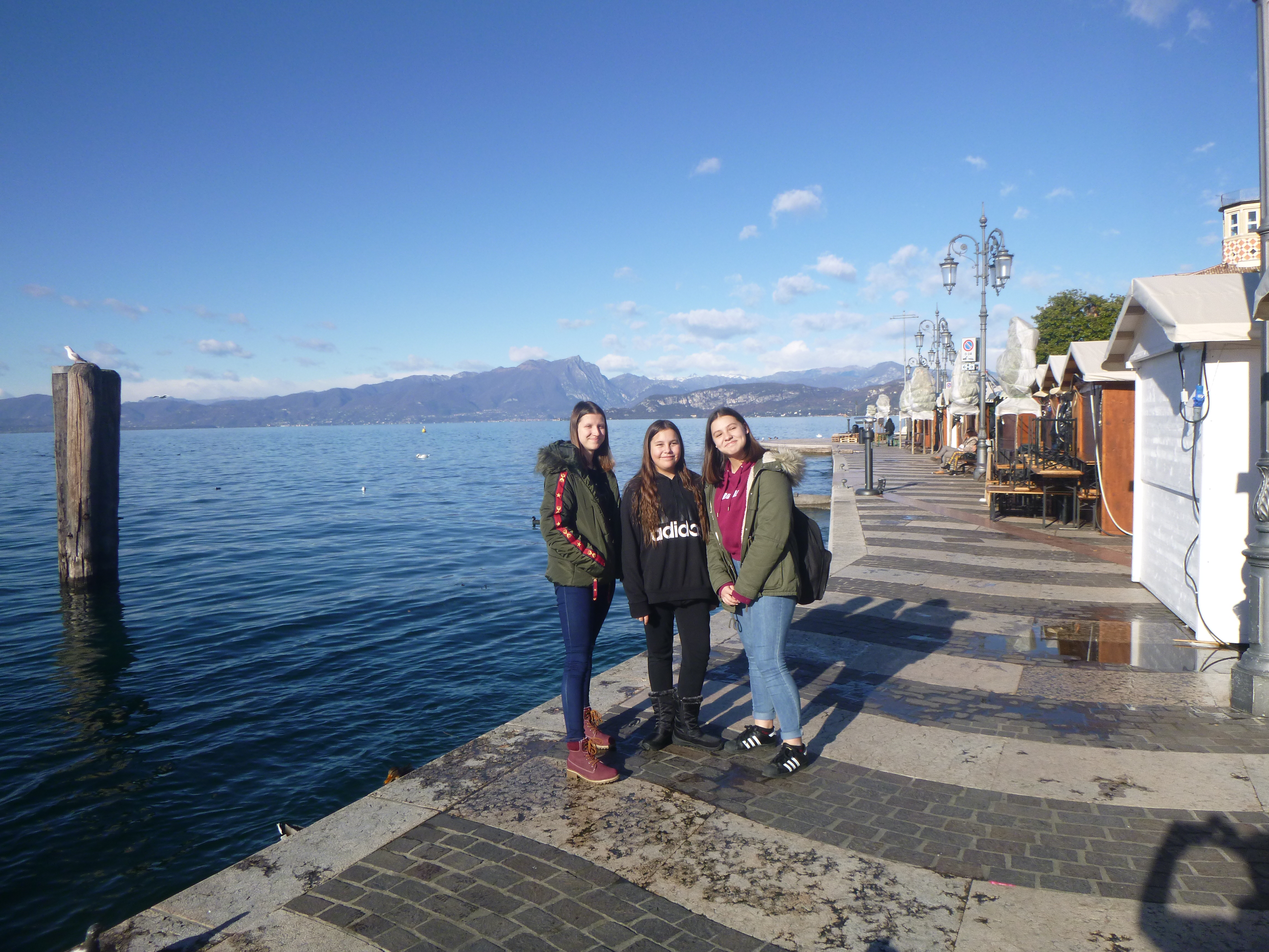 V ponedeljek, 10.12.2018, smo dan začeli v šoli, okoli dvanajste ure pa smo šli na ogled mesta Lazise. Mesto je zelo lepo. Na sprehodu ob jezeru smo videli veliko račk in labodov. Po končanem ogledu smo imeli skupni piknik. Med piknikom nas je obiskal župan Lazise. Nato smo se vsi skupaj odpravili v Verono, mesto tragičnih zaljubljencev Romea in Julije. Ogledali smo si Julijin balkon, pod katerim stoji kip Julije, v bližini pa je stena, polna sporočilc zaljubljenih turistov. Ogledali smo si tudi znamenito veronsko areno. Potem smo imeli prosti čas za sprehod med stojnicami, kar nam je bilo, po pravici povedano, zelo všeč. Ta dan smo večerjali v McDonald’su. Ko smo se vrnili domov, vsak k svoji italijanski družini, sem bila že zelo zaspana in sem šla takoj spat.